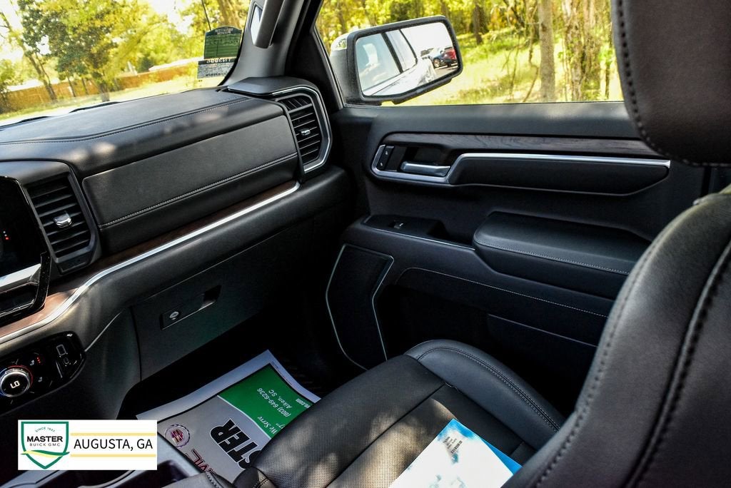 Sierra 1500 SLT, 4D Crew Cab, 3.0L I6, 10-Speed Automatic, 4WD, Quicksilver Metallic, Jet Black w/Leather-Appointed Seat Trim, 10-Way Power Driver Seat Adjuster w/Lumbar, 10-Way Power Passenger Seat Adjuster w/Lumbar, 120-Volt Bed Mounted Power Outlet, 120-Volt Instrument Panel Power Outlet, 170 Amp Alternator, 2 Charge/Data USB Ports, 2 Type-C Charge-Only Rear USB Ports, 220 Amp Alternator, 3.23 Rear Axle Ratio, 4-Wheel Disc Brakes, 6-Speaker Audio System Feature, ABS brakes, Apple CarPlay/Android Auto, Auto High-beam Headlights, Auto-dimming door mirrors, Auto-dimming Rear-View mirror, Auto-Locking Rear Differential, Automatic Emergency Braking, Auxiliary External Transmission Oil Cooler, Brake assist, Buckle to Drive, Chrome Header & Chrome Grille Insert Bars, Chrome Wheel To Wheel Assist Steps, Color-Keyed Carpeting Floor Covering, Compass, Deep-Tinted Glass, Delay-off headlights, Driver Memory, Dual Exhaust System, Dual front impact airbags, Dual front side impact airbags, Electric Rear-Window Defogger, Electrical Steering Column Lock, Electronic Stability Control, Emergency communication system: OnStar and GMC Connected Services capable, Engine Block Heater, Exterior Parking Camera Rear, Following Distance Indicator, Forward Collision Alert, Front anti-roll bar, Front fog lights, Front Frame-Mounted Black Recovery Hooks, Front Pedestrian Braking, Front Rainsensing Wipers, Front wheel independent suspension, Fully automatic headlights, GMC Connected Access Capable, HD Rear Vision Camera, Heated door mirrors, Heated Driver & Front Outboard Passenger Seating, Heated Steering Wheel, Heavy-Duty Air Filter, Hill Descent Control, Hitch Guidance, Illuminated entry, IntelliBeam Automatic High Beam On/Off, Keyless Open & Start, Lane Keep Assist w/Lane Departure Warning, LED Cargo Area Lighting, Low tire pressure warning, Manual Tilt-Wheel & Telescoping Steering Column, Memory seat, Navigation System, Occupant sensing airbag, Off-Road Suspension, OnStar & GMC Connected Services Capable, Overhead airbag, Panic alarm, Perimeter Lighting, Power Door Locks, Power door mirrors, Power driver seat, Power Front Passenger Windows w/Express Up/Down, Power Front Windows w/Driver Express Up/Down, Power Rear Windows w/Express Down, Power steering, Power windows, Preferred Equipment Group 4SA, Push Button Start, Rain sensing wipers, Rear Wheelhouse Liners, Remote keyless entry, Remote Vehicle Starter System, Security system, SiriusXM w/360L, Speed control, Speed-sensing steering, Standard Suspension Package, Steering Wheel Audio Controls, Telescoping steering wheel, Theft Deterrent System (Unauthorized Entry), Tilt steering wheel, Traction control, Trailering Package, Trip computer, Variably intermittent wipers, Wheels: 18 x 8.5 6-Spoke Machined Aluminum, Wi-Fi Hotspot Capable, Wireless Phone Projection, X31 Hard Badge, X31 Off-Road Package.