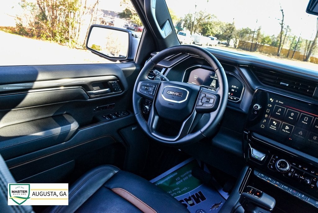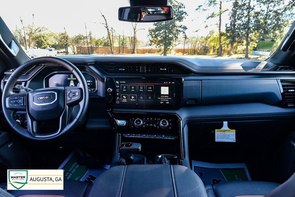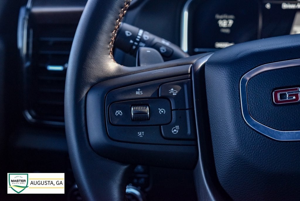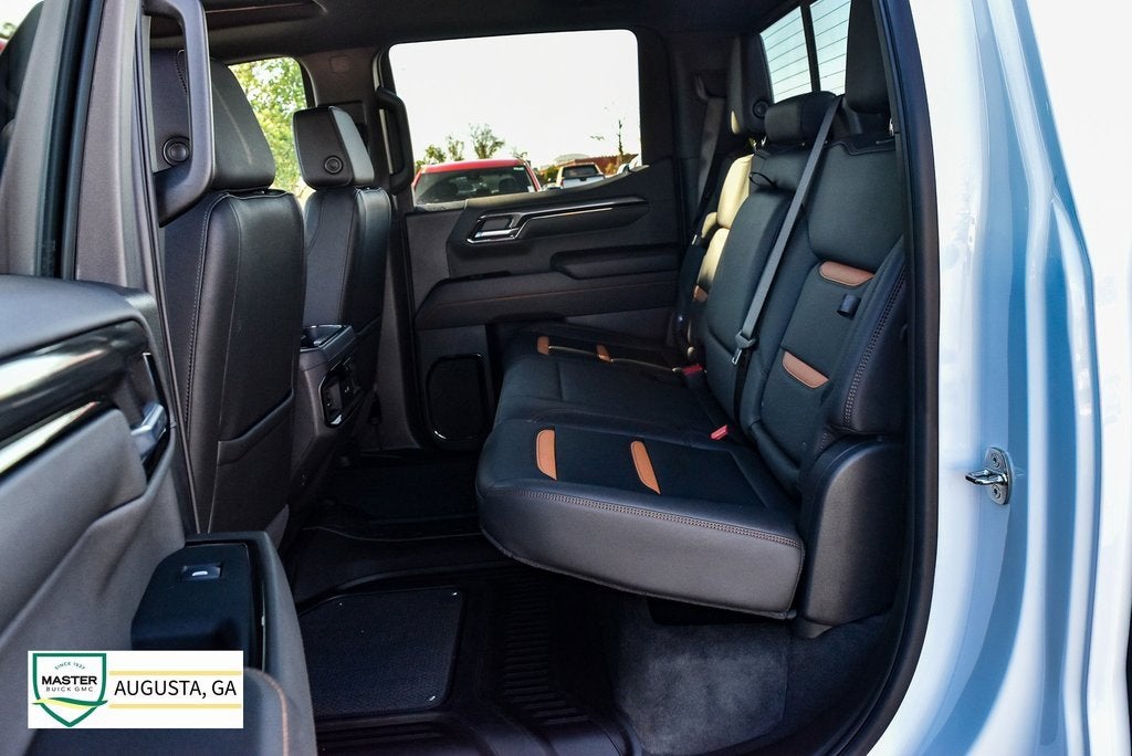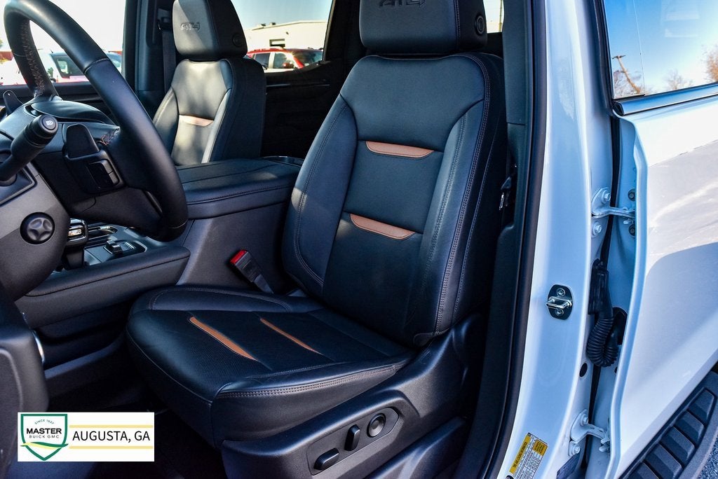 Sierra 1500 AT4, 4D Crew Cab, EcoTec3 6.2L V8, 10-Speed Automatic, 4WD, Summit White, Jet Black w/Kalahari Accents w/Perforated Front Leather Seat Trim, 10-Way Power Driver Seat Adjuster w/Lumbar, 10-Way Power Passenger Seat Adjuster w/Lumbar, 120-Volt Bed Mounted Power Outlet, 120-Volt Interior Power Outlet, 170 Amp Alternator, 18 x 8.5 Machined Aluminum Wheels, 2 Charge/Data USB Ports Inside Center Console, 2 Type-C Charge-Only Rear USB Ports, 2 USB Ports, 220 Amp Alternator, 3.23 Rear Axle Ratio, 4-Wheel Disc Brakes, ABS brakes, Air Conditioning, AM/FM radio: SiriusXM with 360L, Apple CarPlay/Android Auto, AT4 Preferred Package, AT4 Premium Package, Auto High-beam Headlights, Auto-dimming door mirrors, Auto-dimming Rear-View mirror, Auto-Locking Rear Differential, Automatic Emergency Braking, Automatic temperature control, Auxiliary External Transmission Oil Cooler, Black Chrome Header & Grille Insert Bars, Block heater, Brake assist, Buckle to Drive, Color-Keyed Carpeting Floor Covering, Deep-Tinted Glass, Delay-off headlights, Driver Memory, Dual Active Exhaust, Dual front impact airbags, Dual front side impact airbags, Electric Rear-Window Defogger, Electronic Stability Control, External Engine Oil Cooling, Floor-Mounted Center Console, Following Distance Indicator, Forward Collision Alert, Front anti-roll bar, Front dual zone A/C, Front fog lights, Front Pedestrian Braking, Front Prem Floor Liners w/Removable Carpet Insert, Front Rain-Sensing Wipers, Front wheel independent suspension, Fully automatic headlights, GMC Connected Access Capable, HD Surround Vision, Heated 2nd Row Outboard Seats, Heated door mirrors, Heated Driver & Front Outboard Passenger Seating, Heated steering wheel, Heavy-Duty Air Filter, Hill Descent Control, Hitch Guidance, Hitch View, Illuminated entry, In-Vehicle Trailering System App, Integrated Trailer Brake Controller, IntelliBeam Automatic High Beam On/Off, Keyless Open & Start, Lane Keep Assist w/Lane Departure Warning, LED Cargo Area Lighting, Low tire pressure warning, Memory seat, Navigation System, Occupant sensing airbag, Off-Road High Clearance Step (LPO), Off-Road Suspension, OnStar & GMC Connected Services Capable, Overhead airbag, Panic alarm, Perforated Front Leather Seat Trim, Perimeter Lighting, Power Door Locks, Power door mirrors, Power driver seat, Power Front Passenger Windows w/Express Up/Down, Power Front Windows w/Driver Express Up/Down, Power passenger seat, Power Rake & Telescoping Steering Column, Power Rear Windows w/Express Down, Power Sliding Rear Window w/Rear Defogger, Power steering, Power Sunroof, Power windows, Preferred Equipment Group 4SB, Premium audio system: GMC Infotainment System, Premium Bose 7-Speaker Sound System, Push Button Start, Radio data system, Radio: Premium GMC Infotainment Audio System, Rain sensing wipers, Rear Cross Traffic Braking, Rear Pedestrian Detection, Rear Wheelhouse Liners, Rear window defroster, Red Recovery Hooks, Remote keyless entry, Remote Vehicle Starter System, Safety Alert Seat, Security system, SiriusXM w/360L, Speed control, Speed-sensing steering, Spray-On Pickup Bedliner w/AT4 Logo, Steering Wheel Audio Controls, Telescoping steering wheel, Theft Deterrent System (Unauthorized Entry), Tilt steering wheel, Traction control, Trailer Camera Provisions, Trailer Side Blind Zone Alert, Trailering Package, Ultrasonic Front & Rear Park Assist, Universal Home Remote, Variably intermittent wipers, Ventilated Driver & Front Passenger Seats, Wi-Fi Hotspot Capable, Wireless Apple CarPlay/Wireless Android Auto, Wireless Charging.