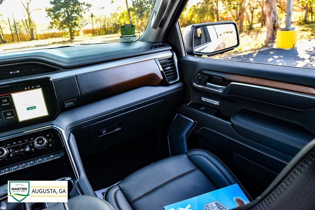 Sierra 1500 Denali, 4D Crew Cab, EcoTec3 6.2L V8, 10-Speed Automatic, 4WD, Onyx Black, Jet Black w/Leather-Appointed Seat Trim, 12-Way Power Driver Seat Adjuster w/Lumbar, 12-Way Power Passenger Seat Adjuster w/Lumbar, 120-Volt Bed Mounted Power Outlet, 120-Volt Interior Power Outlet, 170 Amp Alternator, 2 Charge/Data USB Ports Inside Center Console, 2 Type-C Charge-Only Rear USB Ports, 2 USB Ports, 4-Wheel Disc Brakes, ABS brakes, Adaptive suspension, Air Conditioning, Apple CarPlay/Android Auto, Auto-dimming door mirrors, Auto-dimming Rear-View mirror, Auto-Locking Rear Differential, Automatic temperature control, Auxiliary External Transmission Oil Cooler, Bed View Camera, Brake assist, Buckle to Drive, Chrome Header w/Signature Denali Chrome Grille, Chrome Recovery Hooks, Chrome Wheel To Wheel Assist Steps, Color-Keyed Carpeting Floor Covering, Deep-Tinted Glass, Denali Premium Suspension w/Adaptive Ride Control, Driver Memory, Dual Active Exhaust, Dual front impact airbags, Dual front side impact airbags, Electric Rear-Window Defogger, Electronic Stability Control, Emergency communication system: OnStar and GMC connected services capable, Enhanced Automatic Emergency Braking, Floor-Mounted Center Console, Following Distance Indicator, Forge Perforated Leather Seat Trim, Forward Collision Alert, Front anti-roll bar, Front dual zone A/C, Front Pedestrian Braking, Front Rain-Sensing Wipers, Front wheel independent suspension, Garage door transmitter, GMC Connected Access Capable, HD Surround Vision, Heated 2nd Row Outboard Seats, Heated door mirrors, Heated Driver & Front Outboard Passenger Seating, Heated steering wheel, Heavy-Duty Air Filter, Hill Descent Control, Hitch Guidance, Hitch View, Illuminated entry, In-Vehicle Trailering System App, Integrated Trailer Brake Controller, IntelliBeam Automatic High Beam On/Off, Keyless Open & Start, Lane Keep Assist w/Lane Departure Warning, LED Cargo Area Lighting, Low tire pressure warning, Memory seat, Multicolor 15 Diagonal Head-Up Display, Navigation System, Occupant sensing airbag, OnStar & GMC Connected Services Capable, Overhead airbag, Panic alarm, Perimeter Lighting, Power Door Locks, Power door mirrors, Power driver seat, Power Front Passenger Windows w/Express Up/Down, Power Front Windows w/Driver Express Up/Down, Power passenger seat, Power Rake & Telescoping Steering Column, Power Rear Windows w/Express Down, Power Sliding Rear Window w/Rear Defogger, Power steering, Power Sunroof, Power windows, Preferred Equipment Group 5SA, Premium Bose 7-Speaker Sound System, Push Button Start, Rain sensing wipers, Rear Camera Mirror, Rear Cross Traffic Braking, Rear Pedestrian Detection, Rear Wheelhouse Liners, Rear window defroster, Remote keyless entry, Remote Vehicle Starter System, Safety Alert Seat, Security system, SiriusXM w/360L, Speed control, Speed-sensing steering, Spray-On Pickup Bedliner w/Denali Logo, Steering Wheel Audio Controls, Technology Package, Telescoping steering wheel, Theft Deterrent System (Unauthorized Entry), Tilt steering wheel, Traction control, Trailer Camera Provisions, Trailer Side Blind Zone Alert, Trailering Package, Trip computer, Ultrasonic Front & Rear Park Assist, Universal Home Remote, Variably intermittent wipers, Ventilated Driver & Front Passenger Seats, Wheels: 20 x 9 Multi-Dimensional Polished Alum, Wi-Fi Hotspot Capable, Wireless Apple CarPlay/Wireless Android Auto, Wireless Charging.